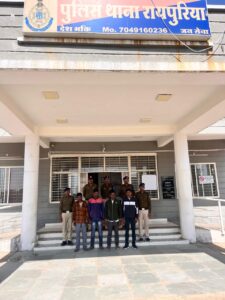 रमेश पिता मागुड़ा जाति खराड़ी उम्र 40 वर्ष, मडिया मानसिंह उर्फ पिता मागुड़ा जाती खराड़ी उम्र 37 वर्ष , मुकेश पिता मागुड़ा जाति खराड़ी उम्र 32 वर्ष, दिनेश पिता मागुड़ा जाति खराड़ी उम्र 30 वर्ष सभी निवासी ग्राम कदवाली मोहनकोट जिन्हें मुखबिर की सूचना पर रामनगर बस स्टैंड से घेरा बंदी कर पकड़ा गया